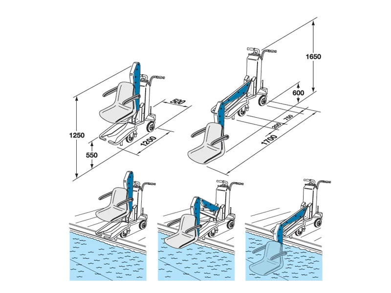 Yatlar – Gemiler, Villalarınız havuzları, site havuzları, özel yüzme salonları, iskelelerde kullanılan engelli havuz asansörleri akülü sistem ve su basınçlı sistem olarak ikiye ayrılmaktadır. Engelli ve yaşlı vatandaşları havuza güvenli bir şeklide indirir ve çıkarır tekerlekleri sayesinde havuzun her köşesinden havuza girebilir ve çıkabilirsiniz. Havuz erişebilirliği için en gelişmiş sistemdir. Sabit bir noktaya monte edilmeyip, bir refakatçi eşliğinde engelli kişinin soyunma odasından havuzun kenarına kadar gelebilmesini ve transfer gereksinimi olmadan havuza girebilmesini sağlar.